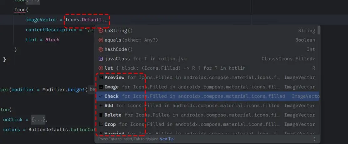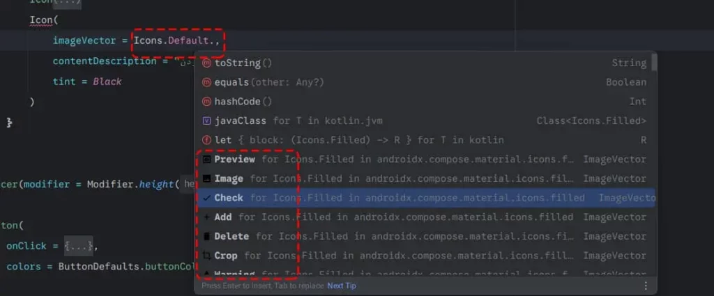 ۲. اضافه کردن آیکونهای پیشفرض اندروید استودیو در Jetpack Compose
