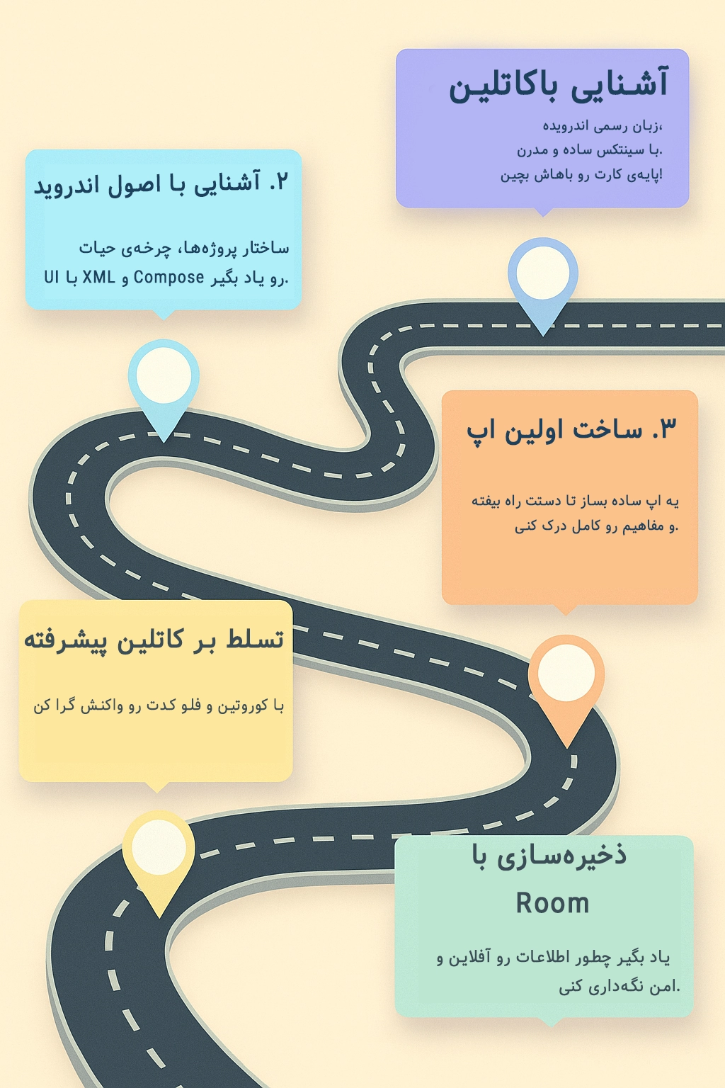 از یادگیری Kotlin شروع کن – اولین قدم نقشه راه برنامه نویسی اندروید 2026